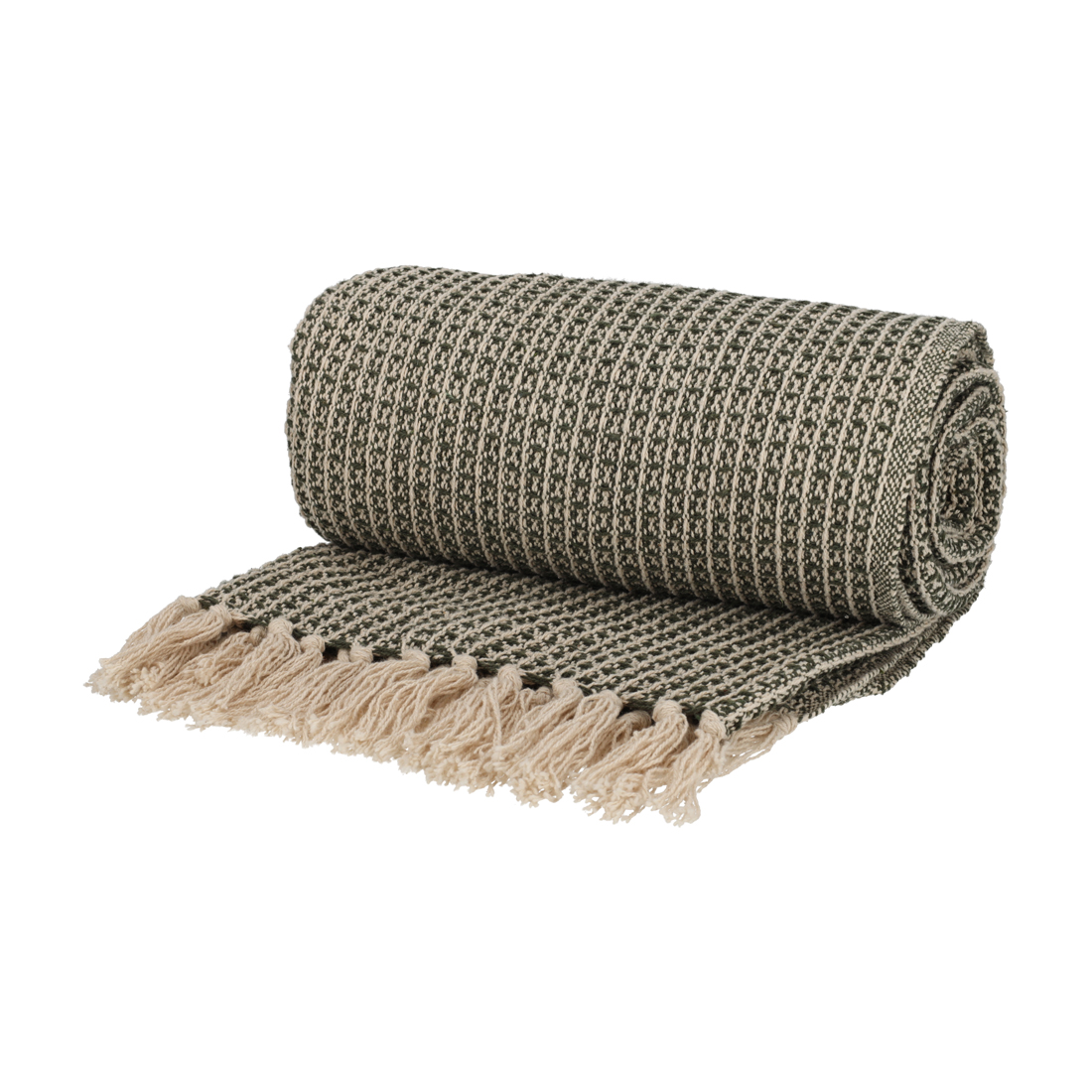 Dit plaid uit India is gemaakt van gerecycled katoen en heeft daardoor een duurzaam karakter. Met het wafelpatroon en de trendy kwastjes is dit plaid een leuke verschijning in je interieur. Leg het plaid uitgevouwen op de bank of op het bed of gebruik dit kleed om heerlijk onder te kruipen tijdens de koude winterdagen.