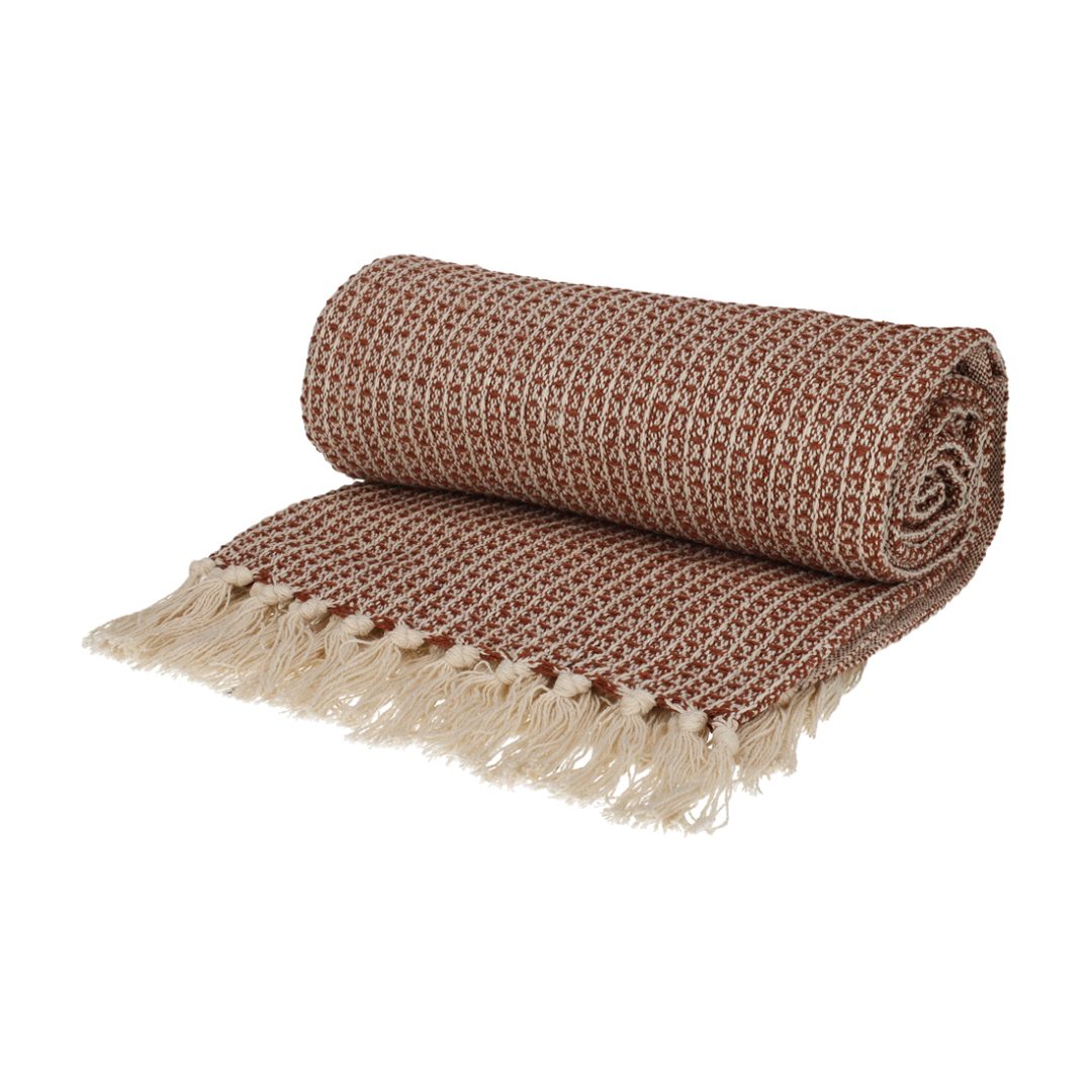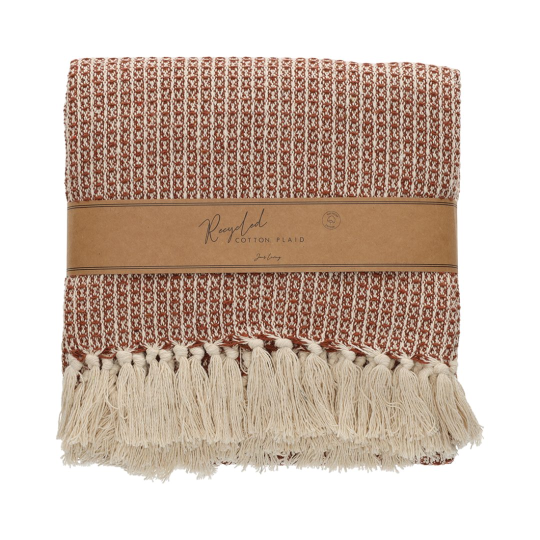 Dit plaid uit India is gemaakt van gerecycled katoen en heeft daardoor een duurzaam karakter. Met het wafelpatroon en de trendy kwastjes is dit plaid een leuke verschijning in je interieur. Leg het plaid uitgevouwen op de bank of op het bed of gebruik dit kleed om heerlijk onder te kruipen tijdens de koude winterdagen.